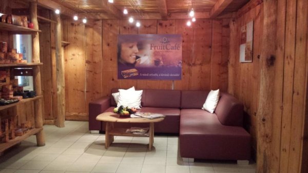 Nem tudom emlékeztek-e rá, de itt anno nagyon-nagyon régen gyermek és ifjúsági könyvtár működött. (Megj.: Ha esetleg van valakinek ebből a korból fotója, vagy dokumentációja az épületről, azt megköszönnénk!) Aztán sok éven keresztül extrém sportbolt volt. Ekkor kapott az épületbelső ilyen természetes fa- és kőburkolatot, amitől amolyan barlang hangulat uralkodott. Szép-szép, de ez nekünk nem annyira tetszett, legalábbis ahhoz, amit éreztetni szerettünk volna az ide belépővel, más kellett: világos felületek, terek, melegség.