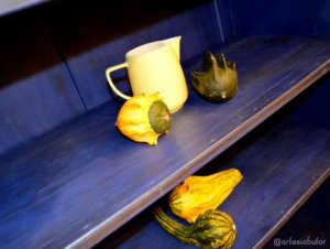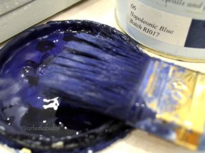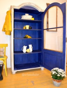 Gyorsan neki is fogtam egyszínűre varázsolni, így kapott egy szép dió lazúr alapot. Már tervezgettem, hova is fog kerülni, milyenre fogom festeni. Mindenképp színes, sötét belsőt és világos külsőt szerettem volna. A választásom Annie Sloan gyönyörű bársonyos kék színére, a Napoleonic Blue-ra esett. Egyszerűen imádom ezt a színt!