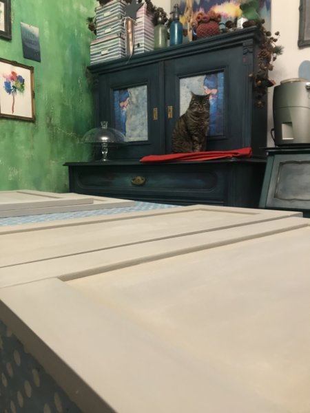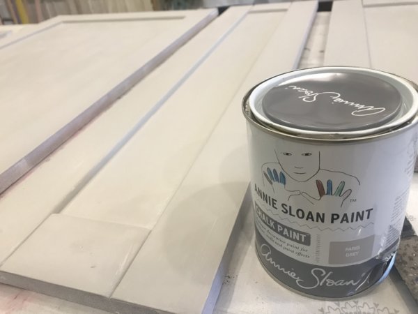 Majd Annie Sloan Paris Grey alapot adtam 2 soron ecsettel, szépen elsimogatva, hogy szép sima legyen a felület.